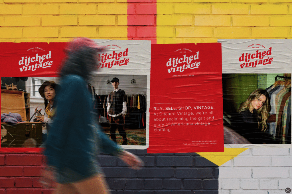 Ditched Vintage is a family-run, edgy vintage retailer blending industrial Australian grit with high-energy Americana nostalgia. As their store grew in popularity, they needed a brand system that matched the excitement, personality, and momentum happening on the ground, something more recognizable and versatile than their original DIY identity.